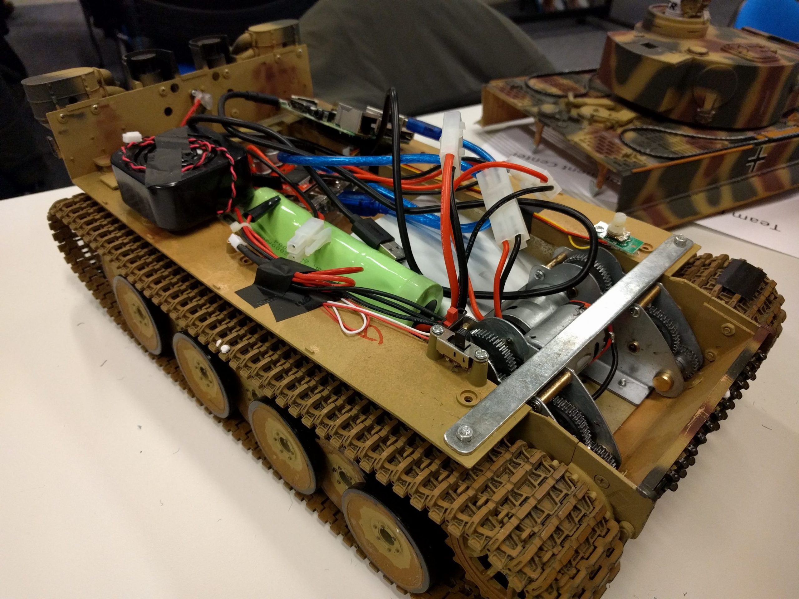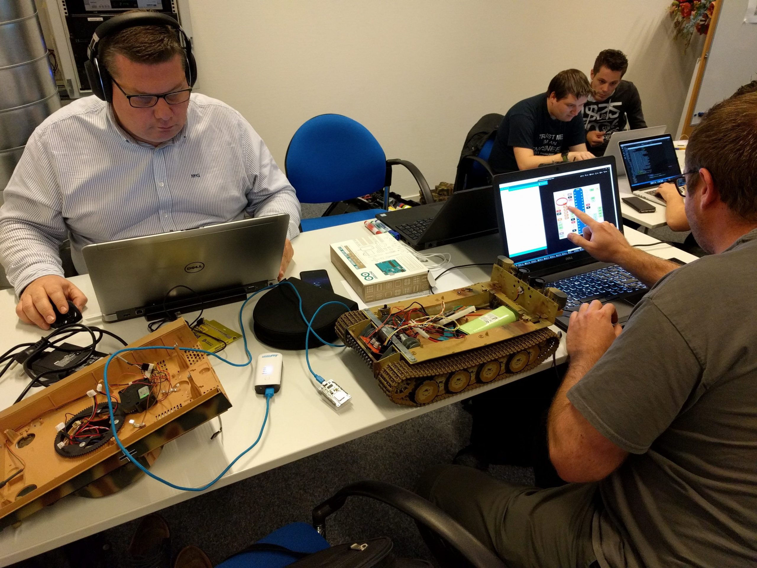 There was just one rule: teams were not allowed to use the default remote controller that came in the box. So they had to find a different solution to control the tank and they did. Teams controlled the tanks with x-box controllers, joysticks, mobile phones, tablets and laptops. To make it all work they used a lot of hardware and wrote many lines of code.